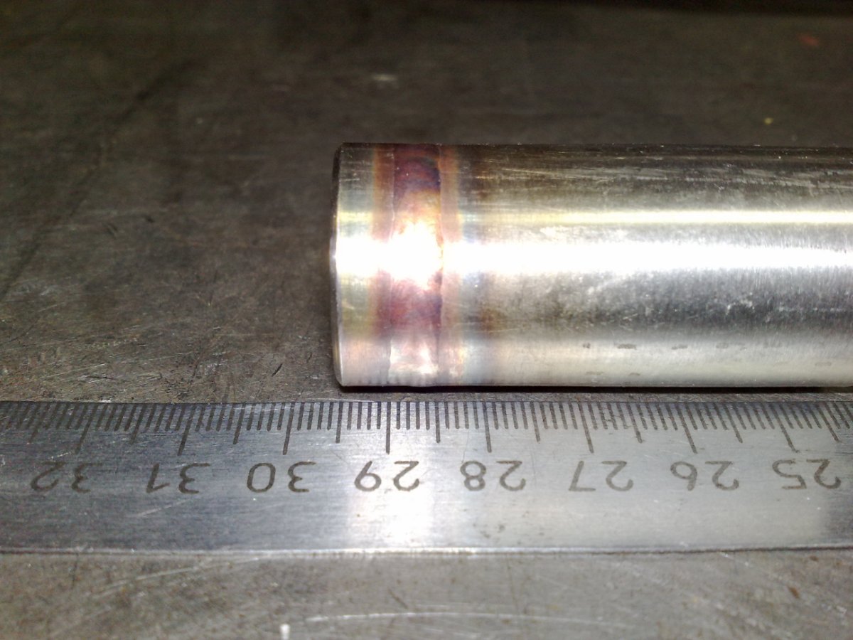 https://vk.com/video-70265905_456240357 Обычная аргонодуговая. Китайцы сейчас предлагают кучу подобных автоматов. Смотрел на канале "Сварщик из Москвы" как он решил проверить глубину провара, он тоже типа думал что только на поверхности ванна. Две пластины по 10 мм. без разделки без зазора прошёл на токе 200 в аргоне и остром электроде, да и угол был на 90 градусов. Сквозной провар составил 8 мм. И это он ещё через валик из присадки грел. Да и попадалось где-то недавно что каждые 100 ампер способны на 4 мм. проплавить металл. На гелии, с более тупой заточкой ли сферой и под прямым углом проплавление будет глубже. Хотя для наших целей достаточно аргона. В идеале на постоянном режиме с одной стороны обеспечить сквозное проплавление без окисления изнутри. Для противодействия окислению при такой технике не нужно снимать окислы металла изнутри. Окислы образуют защитную плёнку и не дают металлу окисляться. Я этот эффект заметил на ПА в углекислоте. Расплав покрыт оксидами и металл не окисляется даже при узком сопле и малом расходе газа. Потом эта плёнка отстреливается со щелчками после остывания и под ней идеально чистый блестящий металл. Аналогичный эффект заметил Лысенко вроде, он тоже рекомендовал при такой технике не зачищать чернину изнутри для защиты от кислорода. Если валик это типа обратный, то там вроде до -0,5 "высота" а это уже не валик а впадина. Ширина и высота усиления полуавтоматом достигается, как я и писал. Задача в том, чтобы избежать разделку, зазор, прихватки, спиливание прихваток и стоп-старты на это. ГОСТ на сварку в 76м году делали, на трубную сварку в 80м а технологии постоянно совершенствуются. Вон дипарк и аркфорс на ПА уже китайцы повторили. До сантиметра проплавляют. Тавр без разделки с двух сторон проходят и благодаря перекрытию достигается сквозной провар 15 мм. А ГОСТ без разделки не предполагает такой сварки. У лаборатории сварки недавно вышло видео про это. Не вижу принципиальной проблемы повторить это в гораздо более контролируемых условиях - без присадки. А если говорить о соблюдении технологий в реальных условиях, то мастаксварка рассказывал как варят за один проход 16-20 мм. Выгорание в аргоне??? Ну я ещё могу предположить что в непосредственном соприкосновении с горячей дугой может перегреваться сталь, но во-первых поверхностный слой можно быстро снять болгаркой а во-вторых по моим представлениям и видео - время воздействия дуги не больше чем в малых режимах на тонком металле. Это же не нержа, чему там выгорать? Марганцу в 17г2с? Единственное что по моим представлениям может быть - усадочные трещины, но и то вряд-ли. Да и выбором режима можно избежать. В распоряжении пульс разной формы есть. Аппарат на 500 ампер предполагается. Да и при последующей облицовке полуавтомат переплавит возможные трещины от усадки. Мне интересно какой ширины ванну без провала выдержит металл. То-ли это абсолютная величина около 2 см., то-ли это относительно толщины стенки. Скорее величина абсолютная. Ванна со всех сторон окружена твёрдым металлом, сужается к низу, поверхностные напряжения действуют со всех сторон. Частично можно играть положением. Не обязательно варить на 12 часов, модно на 10-11. Детали 99% поворотные. Конечно перед внедрением метода всё это проверить нужно. Сейчас вопрос стоит в принципиальной возможности такого метода. Нет желания покупать аппара
