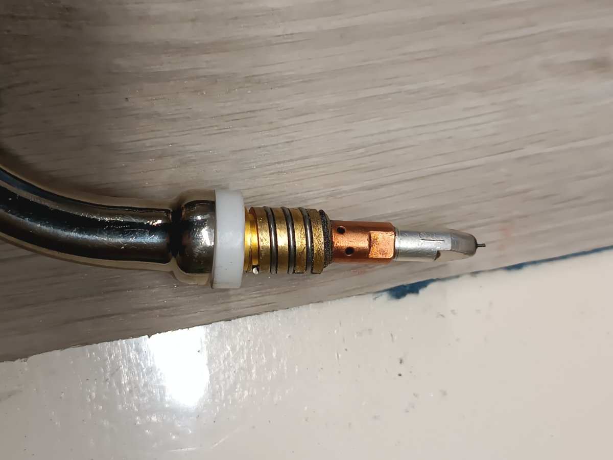 Попытался сфоткать (после 5 -й катушки) 6 -я еще не кончилась. Вы правы износ уже приличный - качая за проволоку - люфт прим 0,3-0,4мм. Пора уже менять. Самое интересное - на втором аппарате вторая катушка а на наконечнике CuCrZr износ уже примерно такой. Правда там токи нередко за 200а. По расходникам могу добавить, что проволоку использую ЕСАБ, каналы на одном тефлон, на мощном углепластик. Постоянно пользуюсь пастой и спреем антипригарным. Работа хоббийная щадящая гонку не утраиваю.