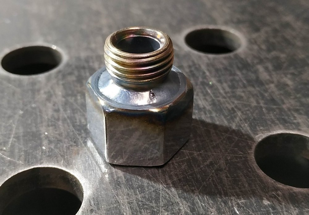 Валера взял, выточил стальное кольцо (даже не выточил, а отрезал от ненужного двухручьевого шкива половинку ручья и слегка его доработал) и приварил к нему шпильки. Получилась накладка, поверх родного чугунно-лопнувшего фиксатора поворотных слесарных тисков. И весь перфоманс ради того, чтобы не варить чугун, так-как я адепт золотого правила механики: "если заводское сломалось, то и ремонтное сломается". Вот донор органов (даже хватит еще на пару "путей самурая").