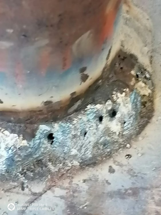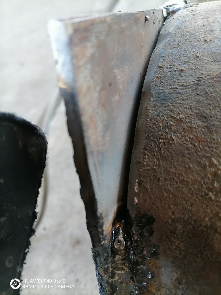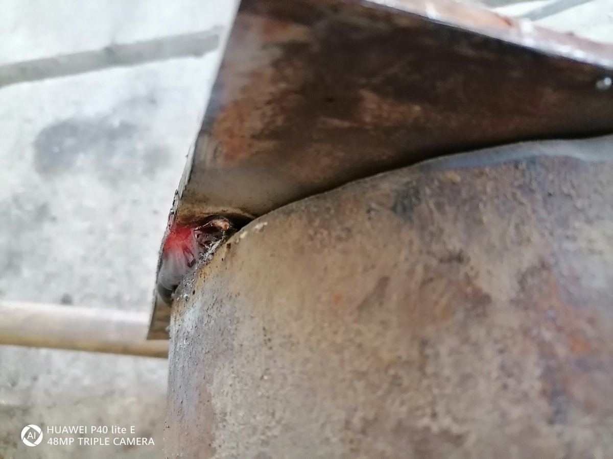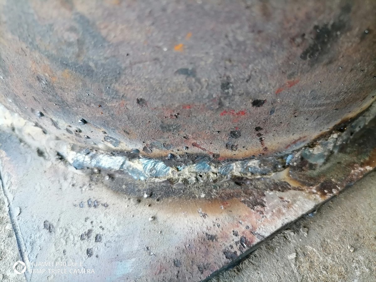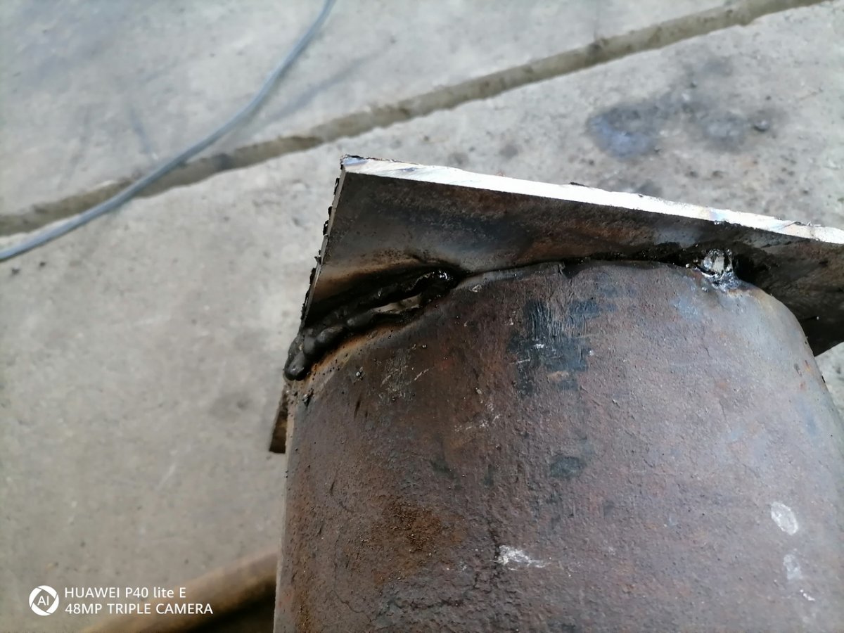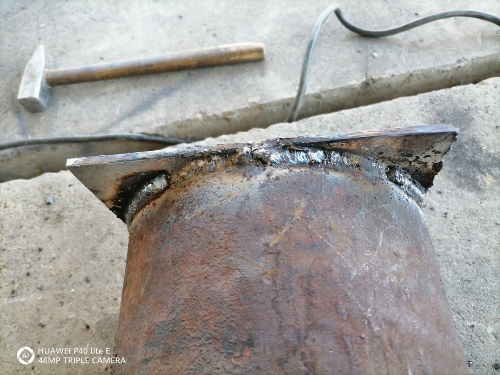 Всем здравствуйте. Ну (с) позлим спецов. Между делом, надо что-то полезное сделать, будет фильтр для воды, на работе, оч.грязная течёт, сантехнику убивает, махом. Аппарат Ресанта 220, электрод гудел, или как там его правильно не знаю, уони 13/55 3,2мм вроде. Тройка короче. Ток 119-140А по крутилке. Труба которая большая 220мм наружняя, толщина стенки 10мм, внутри 32-я, пластина S=6мм. с 220-й трубы снята фаска, пластина и 32-я зачищена УШМ, не полностью, не какчествено, потому мешала краска обгорающая и ржа. Чистил помощник, сильно с него не требовал. Не смотря на так себе очистку, получилось герметично с перваго раза. При таких-то толщинах . Аппарат как собака охотничья, умный стал что ли, не так давно довольно сильно тупил, отключался, в защиту уходил, всё думаю я тя поменяю, ужо начал другой присматривать, и на те заработал, да так не плохо. Есть у этого аппрата два плюса - цена и работает и при минус 20 и при плюс 30 в тени, не уходил в защиту, рука просто держак не могла удержать, горячо шибко. Электроды не сушил не прожаривал, не где. Но заметил, у этих поджиг на много легче чем подобные ЛЭЗ и эсаб, может свежее, не знаю, но факт. Во время сварки ни разу не залип, повторный поджиг, почти как рутиловые китайки типа j-422, практически без прилипаний. Мож случайность, дальше поглядим как будет. Зато поймал одну особенность, сначала впал в лёгкий ступор. Как так? Раньше не было такого, на одном из фото видно конкретные такие поры прям посередине шва, не в начале, не в конце, не протекли, но всё равно не приятно. На эсабах и ЛЭЗах такого вроде не наблюдал. Грешу на подготовку к сварке, края шва не зачищались, тольк если можно так сказать кромки, и когда к ним подходила сварочная ванна, хорошо было видно как разлетаются брызги, но ... повторюсь на эсабах и ЛЭЗах, тоже уони 13/55, такого не замечал. Фотограф с меня, правда не ахти, хочется чтоб швы по лучше видно было, а полчатца ка-то, ну не то, не то что глаз видит. С уонями, перестал бояться зазоров, сваривал практически без отрыва.. толщина то....позволяееет.