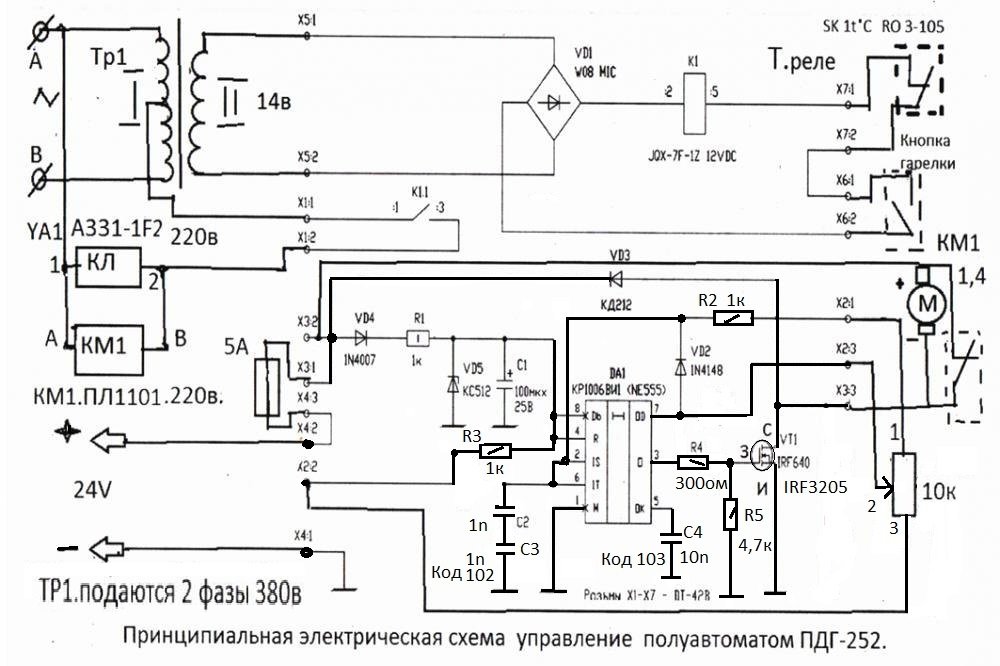 Здравствуйте коллеги. Прошла лекция и не плохо про три фазы 380в . Теперь про Ремонт ПДГ 252 "SELMA" - Ремонт и модернизация... При работе аппарата при подачи проволоки на малых оборотах меняется частота и мотор редуктор издаёт писк когда мало сварочных работ можно терпеть, а вот когда работаешь на аппарате по 8час в день не приятно .И решил это устранить В схеме изменил не которые элементы . правда плата управление не много увеличилось в размерах это на работу не влияет .Все подсоединение остались прежние .Сейчас аппарат работает очень хорошо. Вот СХЕМА и Печатная плата в файле Sprint Layout 6 Коллеги собранная плата если правильно она работает сразу .Возникнуть вопросы пишите отвечу работает уже больше года в аппарате эта плата управление Успехов. Р/S Не забываем в мотре редукторе дворнике отсоединить щётку от массы и вывести провод ,Это для того чтобы транзистор не вышел из строя . ПЛАТА ПДГ-252=1.lay6