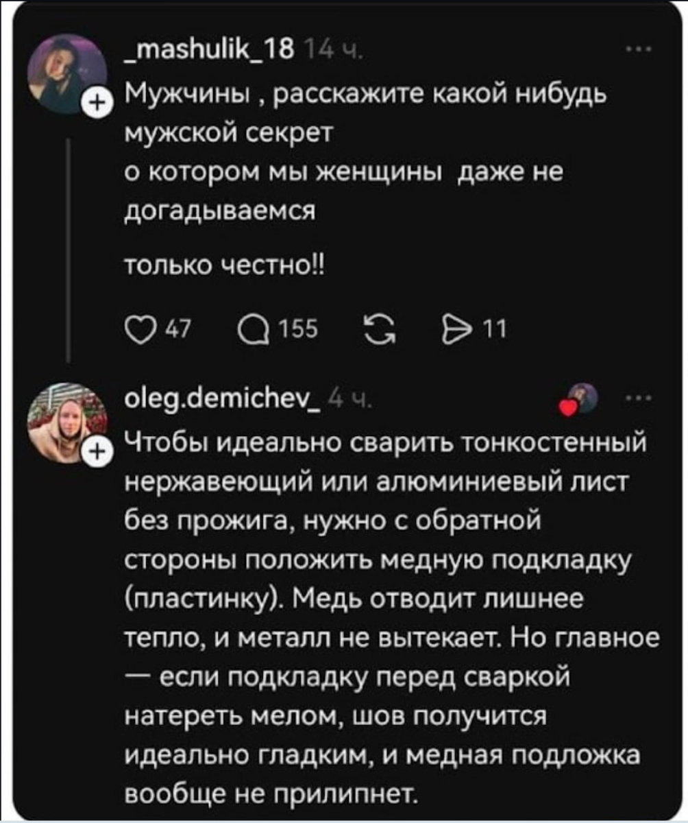 Очередная подзаглохшая тема. Что-то как-то вяло жизнь течёт на сайте. Электроды что ли кончились? Али все на полуавтоматы, да на тиги пересели. Разбавлю малость молчание. Про подбор проволоки на полуавтоматы читал, вычитал фразу, одного из уважаемых форумчан, что мол Российские производители не упыри, бедолаги борются за качество, но получается какчество. Следом возражение другого уважаемого форумчанина, что всё таки, производители есть те самые....(ну понятно). Так о чём это я? Ах, да. Про электроды. Пользовал ранее и намедни, вот снова, потребовалось применение. В ход пошли с начала МР-3 СЗСМ ф3, после эсаб ОК-46 ф3. Параметры и условия для обоих одинаковые, не менялись. Конструкция не ответственная планируется, потому выбор сперва пал на Судиславские МР-3, я ж ими год, два назад отопление сваривал, ворчал но делал. Но в ээээтот раз, сделать прихватку не получилось, тык, мык, никак(с), липнет(с), не зажигается, хотя пачка новая, запакованная, была в заводской целофановой упаковке. Плюнул, взял ОК-46 и быстро всё сраслось, т.е. сварилось, в смысле прихватилось, пачка лежит открытая с лета прошлого года. Да, сеть в этом месте слабовата, переноска тонкая 25м, току накрутил иииии, ок-46 работают, а МР-3 нет. Фото, слева ок-46, справа мр-3. Что-то у МР-3 торец электрода сильно так засирается, а ещё, когда его всё таки раскуришь, то горит с неприятным треском, дуга часто обрывается, повторно плохо зажигается. ОК-46 в этом плане много лучше, лучше них в плане поджига и удержания дуги были только китайские j-422(последняя пачка, к стати тоже не ахти попалась, трещат, брызгают, раньше такого не было. То ли китайцы сами себя подделывать начали, то ли Россияне стали производить). У мну такое ощущение складывается, что кто-то, как-то, спецом, так организует чтобы всё, что сделано на Руси было априори хужее, чем за бугром. Ну их, за бугорных понятно, они благодаря такой ситуёвине, чувствуют себя на голову выше, элитнее, и т.д..... А нас, ??не понятно, вроде не бездельники и могли бы.... Извините, навеяло что-то. Весна снова пожаловала