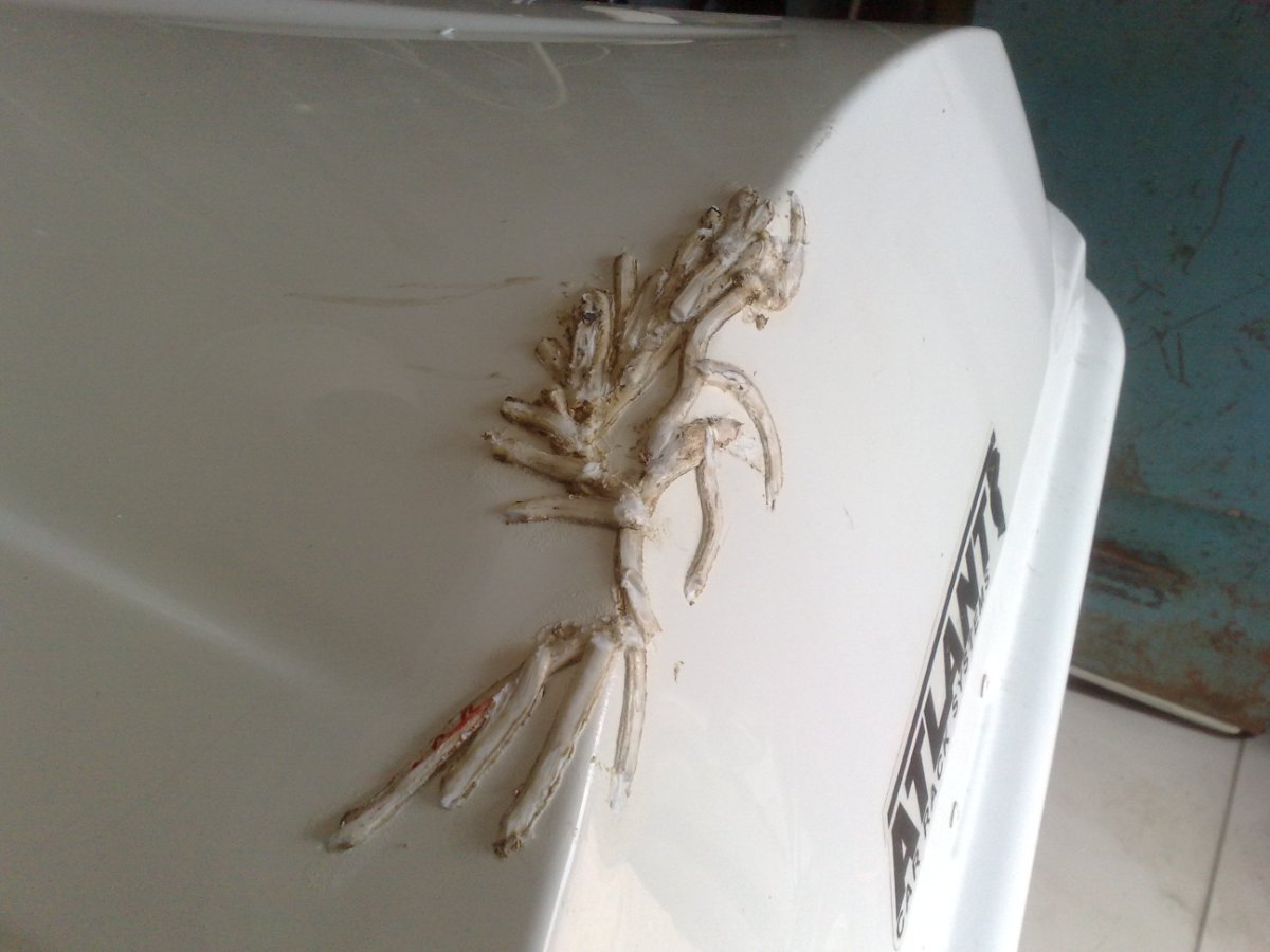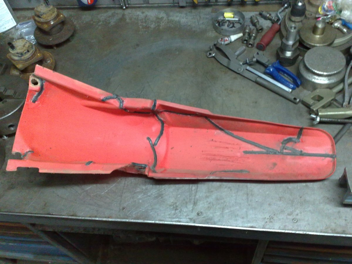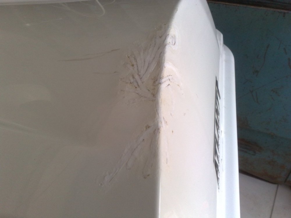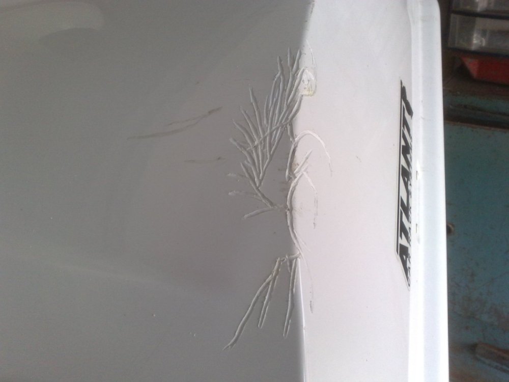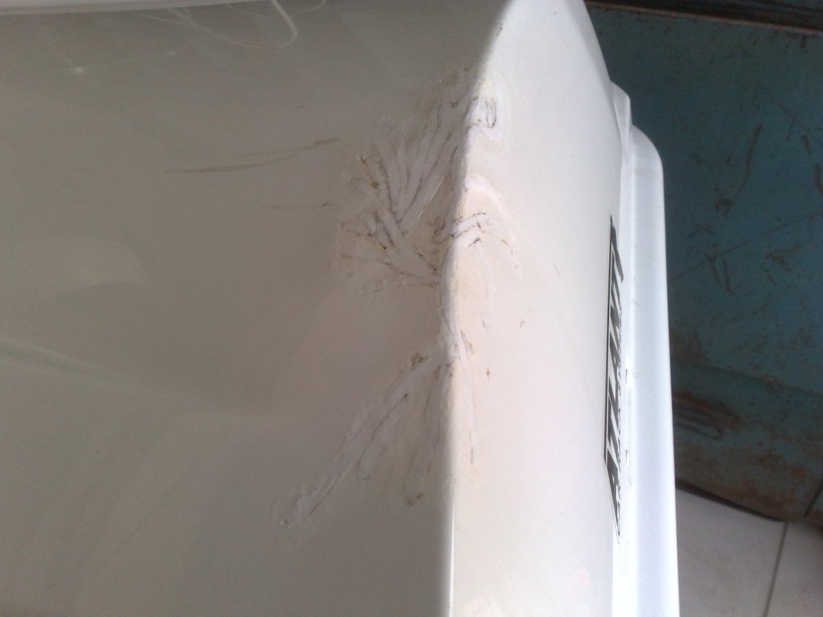 Лопата прыгала внутри и нарыгала на три тысячи. Эта проблема, тоже не проблема. Вот Hummer со стеклопластиковым капотом. Не смогли между двумя деревьями проехать (колея-то по ширине была под нормальные машины). Первый раз я им угол капота приклеил, так-как сломали, но не оторвали. Второй раз, они его оторвали на хрен (вместе с колесом) и даже оторванный кусок не привезли, в болоте бросили. Пришлось оторванный кусок моделировать (пластилиновая модель; матрица). На фото - это первый заход. Клеить - это не наш метод (у нас же websvarka). Я клею только оптический PA, на автомобильных фонарях. А к ABS у меня двоякое чувство. С одной стороны, превосходно вариться (присадочный пруток приваривается к основному материалу без особого давления и очень надежно, в отличие, например, от PP). С другой стороны, материал быстро ведет от нагрева и надо манипулировать стремительно (хуже, наверное, только PS). И главный недостаток - растрескивание мелкими трещинами, которые выявляются, зачастую, уже при сварочном нагреве (характерное растрескивание на фото с другого ремонта). Пруток в наличие только белый (пруток фирмы Leister, из Швейцарии, мать её). Хотя, сейчас пытаюсь заказать - в наличии только черный. Я, в основном, варю автомобильный/мотоциклетный экстерьер, а он, как правило крашенный. Так что цвет, зачастую, не имеет значения. И к тому же, контрастным материалом комфортнее работа, при постобработке. И при сварке происходят неизбежные деформации, которые потов исправляются шпатлевкой. Я конечно максимально выравниваю нагревом, но такой способ имеет ограничения по конечному результату. Иногда заказывают нищебродский ремонт - без окраски. В этом случае приходиться варить с внутренней, не видовой стороны (с неизбежной потерей прочности, в сравнение с ремонтом на лицевой стороне). Такой вариант тоже не критичен к цвету присадки.