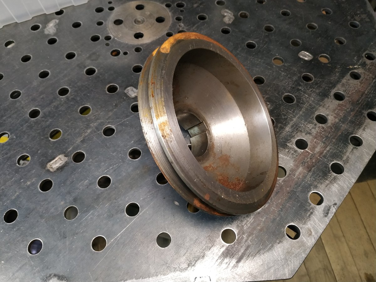 hvr63 Опубликовано 12 часов назад Поделиться Опубликовано 12 часов назад (изменено) 29 минут назад, Dmitry1962 сказал: Что Валера сделал -вот в чем вопрос? Валера взял, выточил стальное кольцо (даже не выточил, а отрезал от ненужного двухручьевого шкива половинку ручья и слегка его доработал) и приварил к нему шпильки. Получилась накладка, поверх родного чугунно-лопнувшего фиксатора поворотных слесарных тисков. И весь перфоманс ради того, чтобы не варить чугун, так-как я адепт золотого правила механики: "если заводское сломалось, то и ремонтное сломается". Вот донор органов (даже хватит еще на пару "путей самурая"). Изменено 12 часов назад пользователем hvr63 1 1 Ссылка на комментарий Поделиться на другие сайты Поделиться